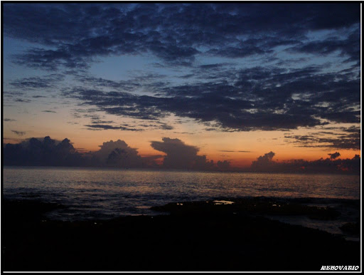 因為當天的雲層有一些厚,所以太陽到了七點才慢慢得從雲中探出頭來。可以泡在海底溫泉中,欣賞日出真的非常的幸福,讓人想在溫泉中多待一會兒。白天炎熱的綠島,沒想到在清晨時會有一個涼爽的時刻,很適合享用這全世界只有三個的海底溫泉。